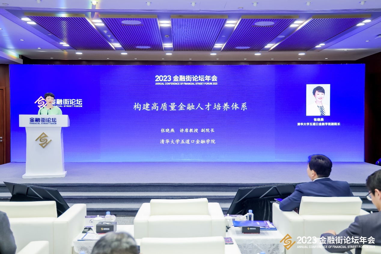 副院长、金融学讲席教授张晓燕受邀参加2023金融街论坛年会——金融人才发展平行论坛“聚英才、筑高低、共创数智金融未来”。会上,张晓燕发表“构建高质量金融人才培养体系”的主题演讲。