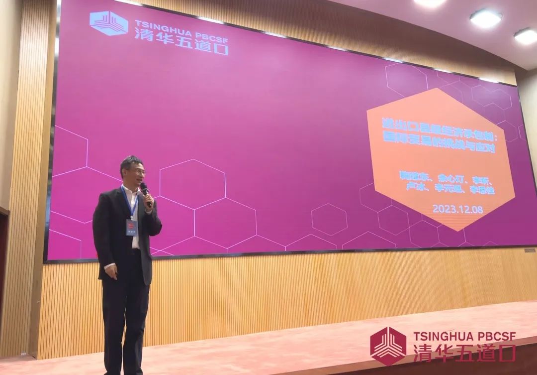 讲席教授、国际金融与经济研究中心(CIFER)、绿色金融研究中心(CGFR)主任鞠建东担任开幕式主持人。鞠建东表示,当前国际贸易环境仍面临着复杂且严峻的挑战,在全球化的大背景下,相关领域的学术交流显得尤为重要。鞠建东期待本次研讨会能为与会学者们、参会观众们搭建一个开放、高效、专业的创新思维交流平台,使大家能够更好地交流自己的研究观点与成果,从而实现学术层面的深度对话,碰撞出更多的有益灵感。