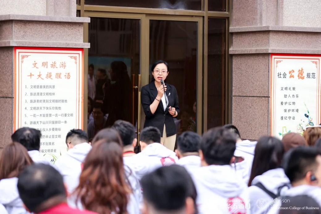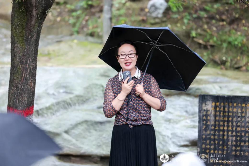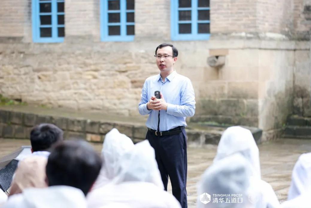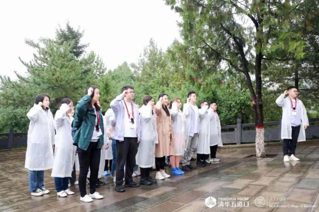 五道金融学院副院长、金融MBA教育中心主任田轩与同学们一同在雨中聆听来自中国延安干部学院的教授现场讲授《延安整风运动及其党的历史意义》和《毛泽东与黄炎培论历史周期律》。