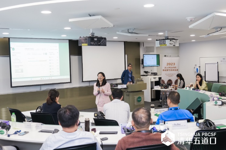 罗小薇以欧洲工商管理学院的MBA校友创业项目——针对埃及和阿联酋市场的糖尿病诊所为案例,进行了VR沉浸式教学。