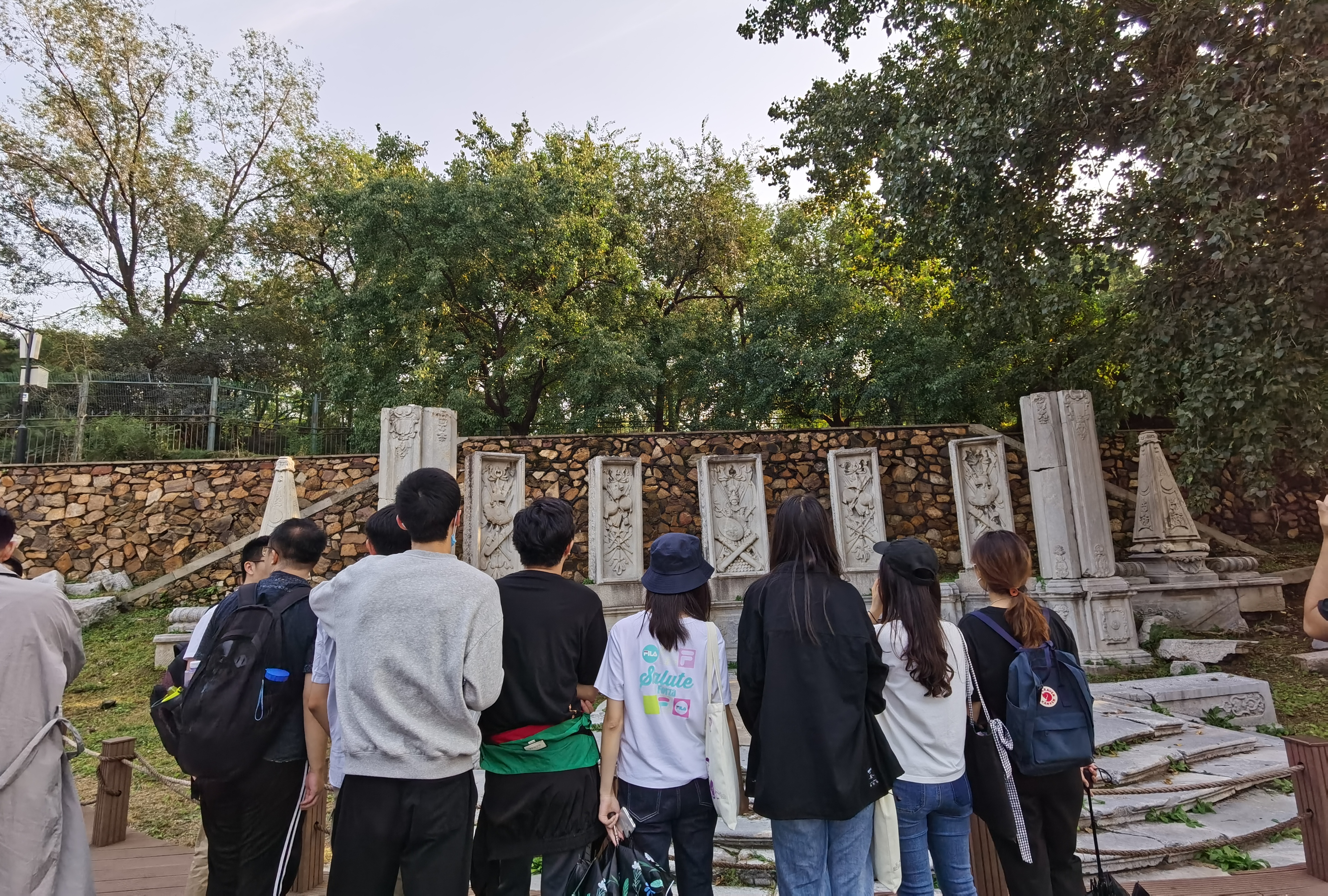 接下来同学们深入游览了圆明园遗址。在游览参观大水法遗址、圆明园全景图等景点时,同学们真切感受到了厚重的历史和其中蕴含的血泪辛酸。被雨果盛赞为“梦幻艺术的崇高典范”的园林杰作在强盗的枪炮中毁于一旦,无数中国人民劳动创造与艺术审美的结晶也随之被破坏盗窃。圆明园的断垣只是时代的缩影,在那风雨如晦的岁月之中,无辜的百姓在铁蹄下艰难挣命,无数不幸的家庭被黑暗吞没。同学们在历史的教训中激发了爱国之情,从中汲取到了精神力量,明确了自己肩负的使命和责任。