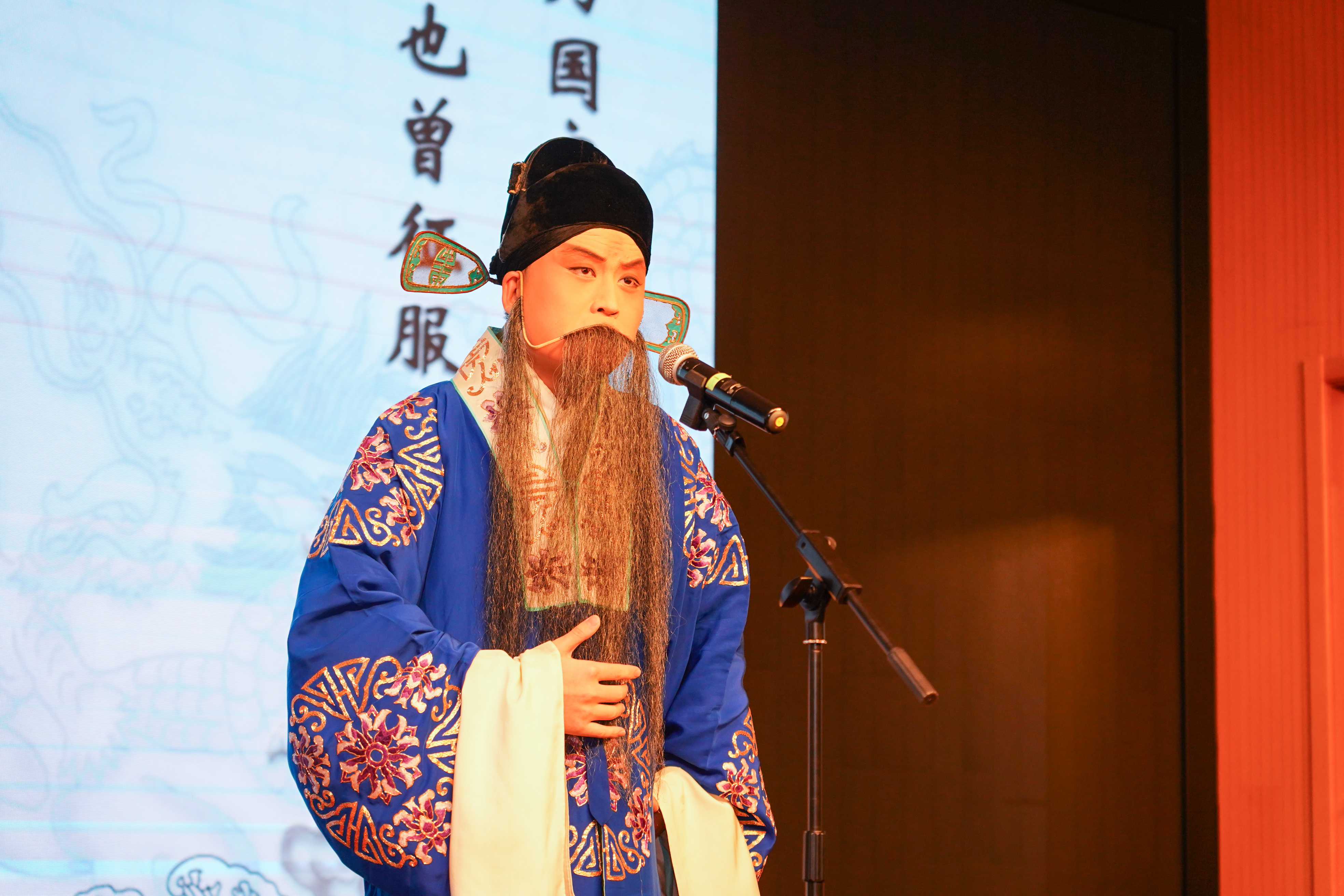 紧随其后的是蔡春岭同学带来的一段京剧表演。《洪洋洞》是京剧大师余叔岩、杨宝森等人的代表作,讲述了孟良盗骨、六郎杨延昭病重身亡的故事。此次演唱的“为国家”选段是该剧的核心唱段。