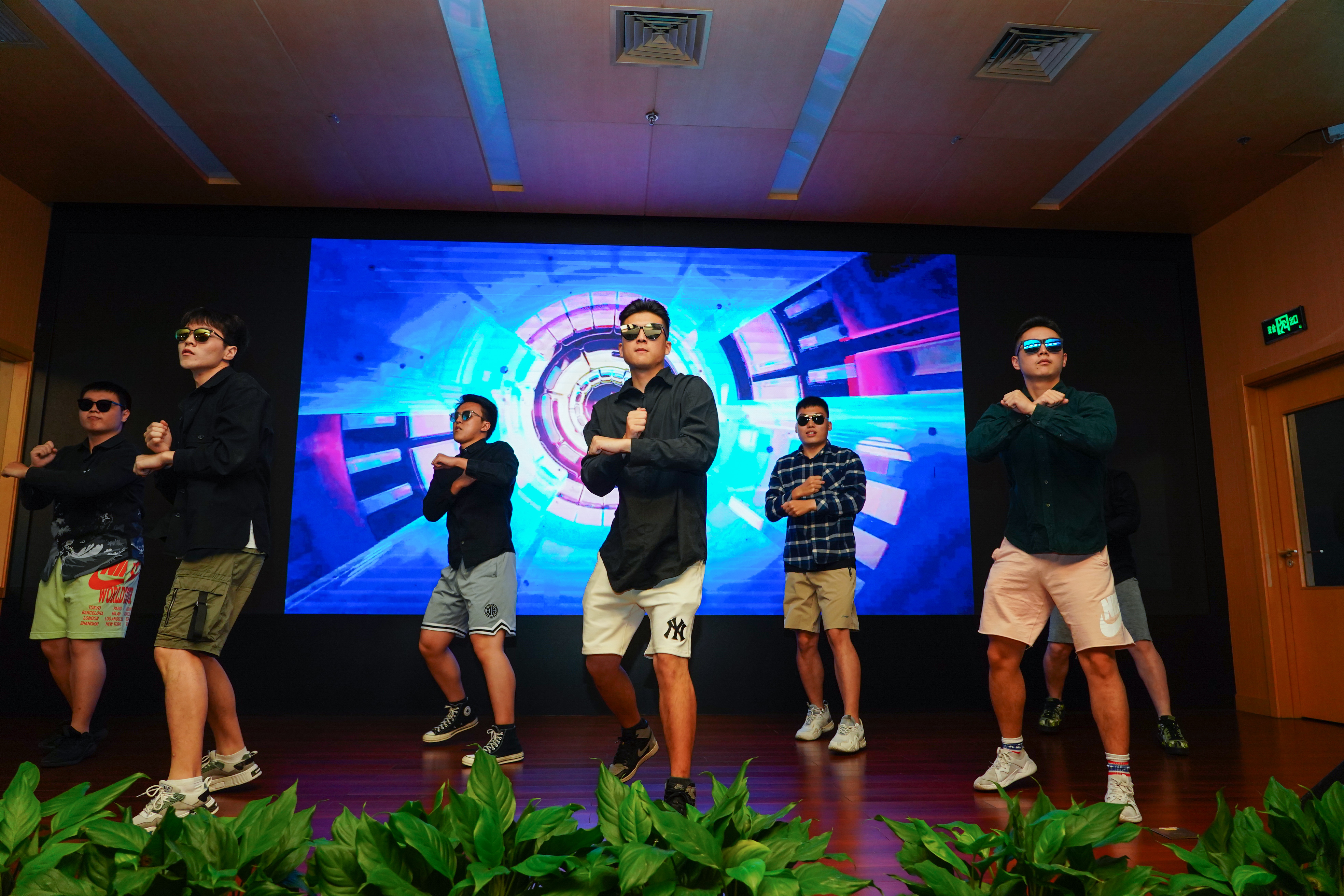 晚会的最后一个节目,来自硕士班的七位宝藏男孩,他们秉承快乐的宗旨,为我们带来一段手势版“加减乘除舞”。数学运算与身体律动的结合带来了无穷的惊喜,今夜high翻全场,他们是整条街最靓的仔。