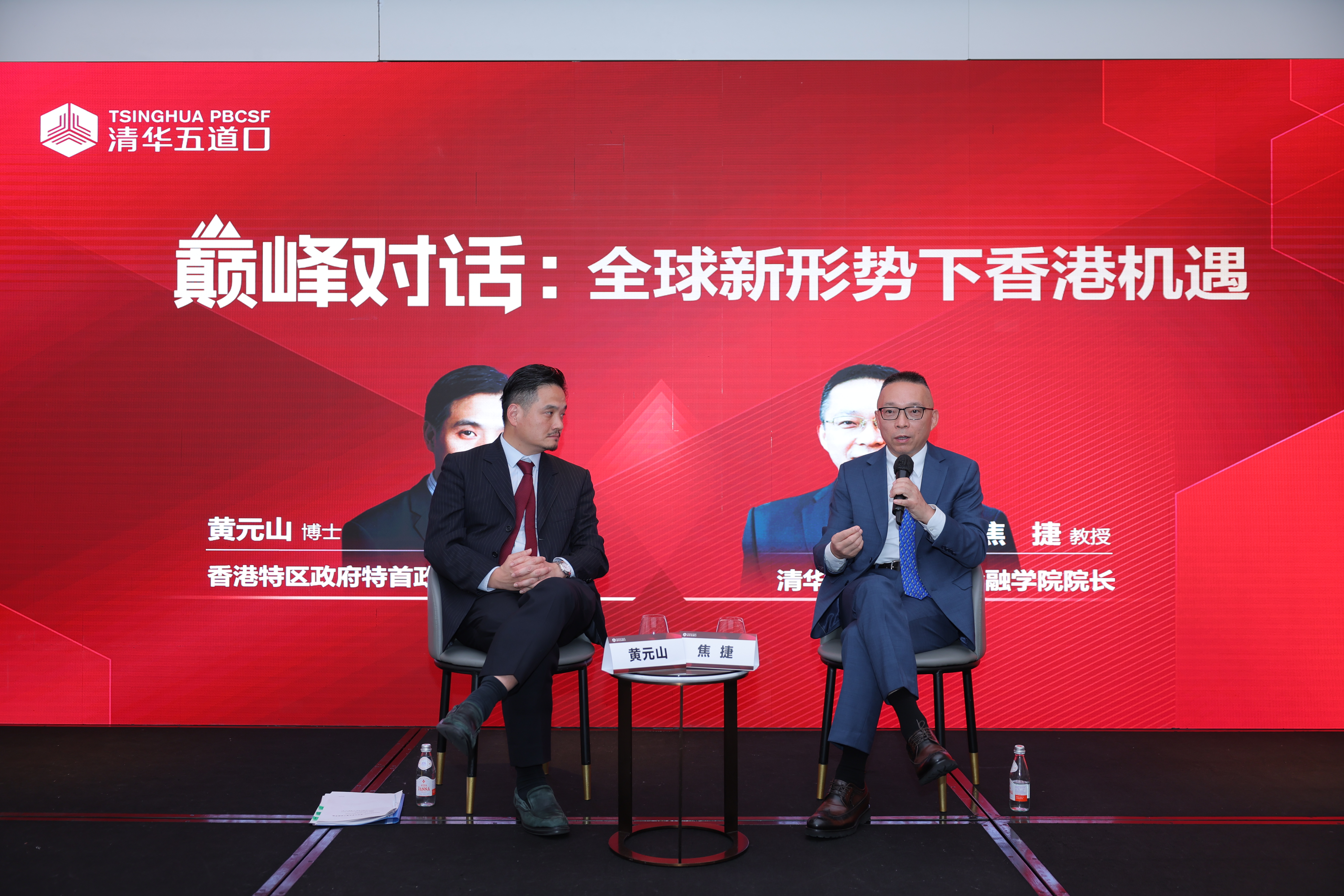 焦捷与黄元山围绕香港定位、“十四五”与“十五五”换挡重点、转型挑战等深入交流。黄元山结合自身从国际投行高管到政策组组长的经历,强调香港核心优势在于资金自由流动、国际接轨制度及“背靠祖国、联通世界”定位,“十五五”将聚焦巩固提升香港国际金融、航运、贸易中心地位,以及建设国际创新科技中心,集聚国际高端人才是关键。焦捷从高校合作视角提出,希望深化与香港在科技成果转化、人才联合培养的合作。黄元山回应,香港正推进“大学城”规划,期待与清华共建产学研机制,助力高科技项目对接香港资本市场与全球VC资源。