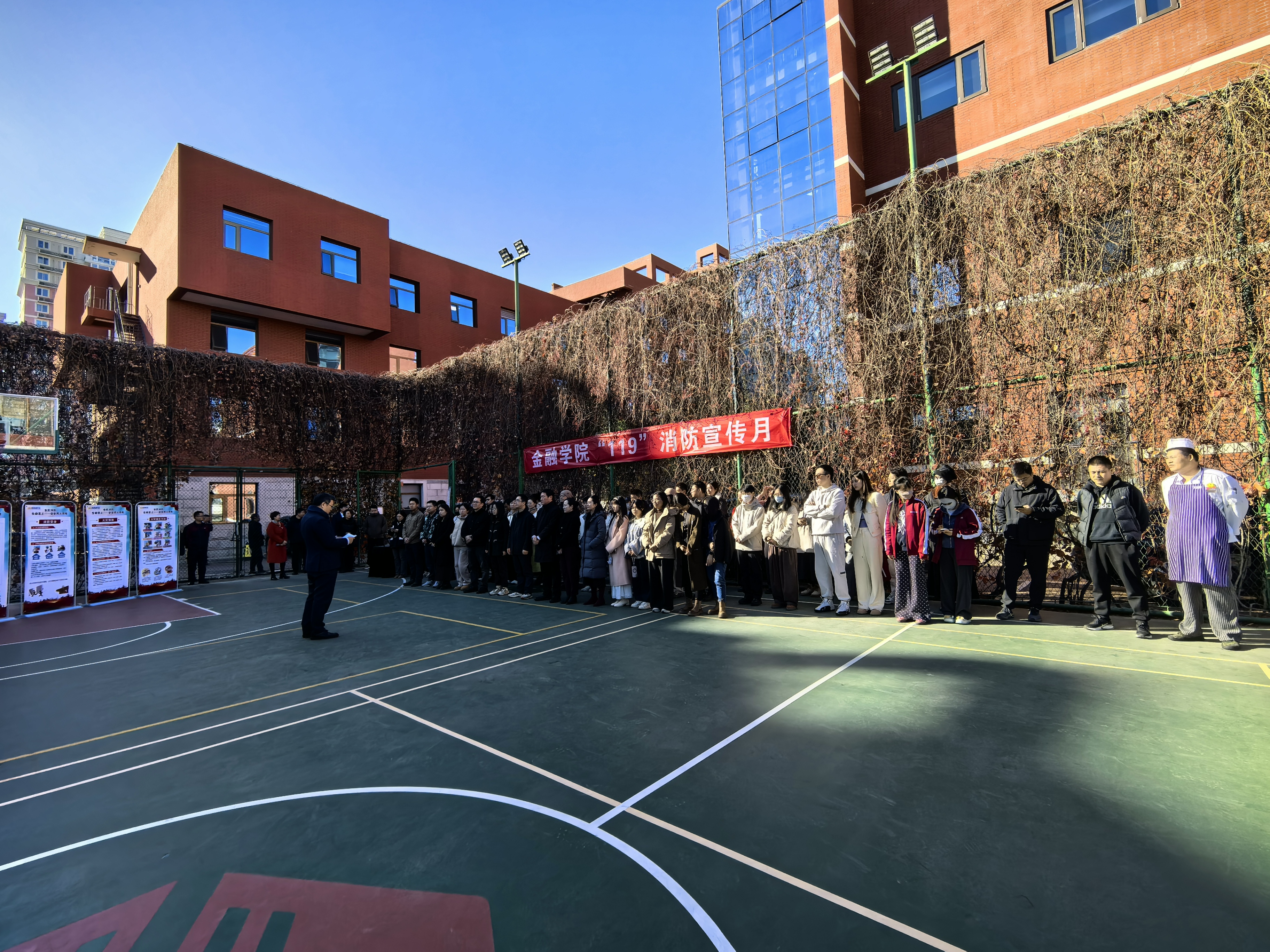 张伟在动员讲话中强调消防安全工作是学院安全稳定的重要保障,要求全体师生切实提高思想认识,将消防安全责任落到实处。随后,李源结合典型火灾案例,进一步警示消防安全无小事,并号召大家掌握消防技能、积极参与学院消防安全建设,共同营造平安校园环境。