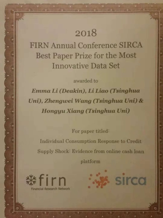 from Online Cash Loan Platform)在澳大利亚2018年金融研究网络(Financial Research Network,FIRN)年会中,荣获年会最佳论文奖。