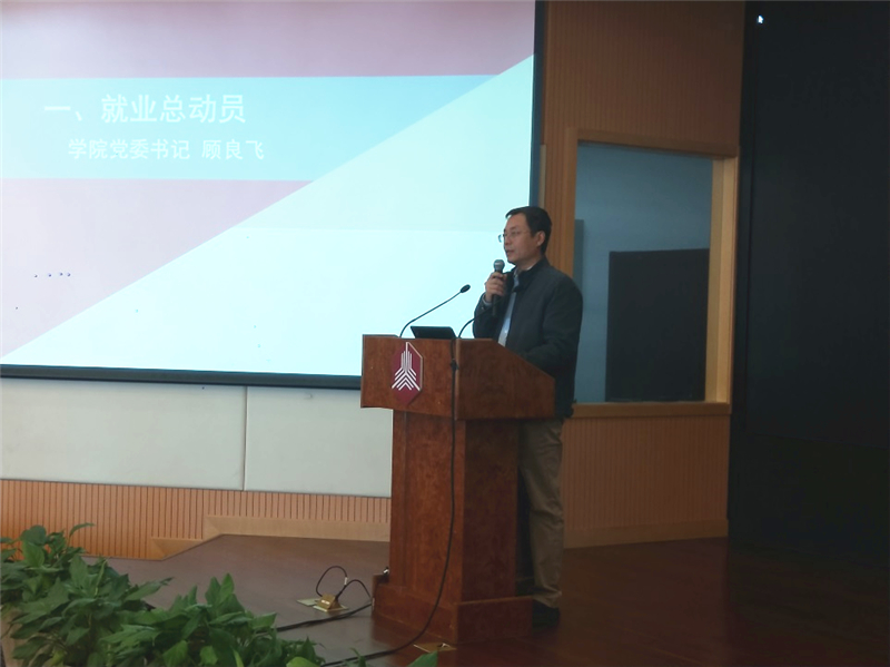 2019届就业动员大会召开,学院党委书记顾良飞、学校职业发展指导中心副主任蔡志楠、学院学生办主任王正位、学生办副主任刘国尧,以及学院150余名即将毕业的2019届学生参加了本次动员会。动员会由王正位主持。