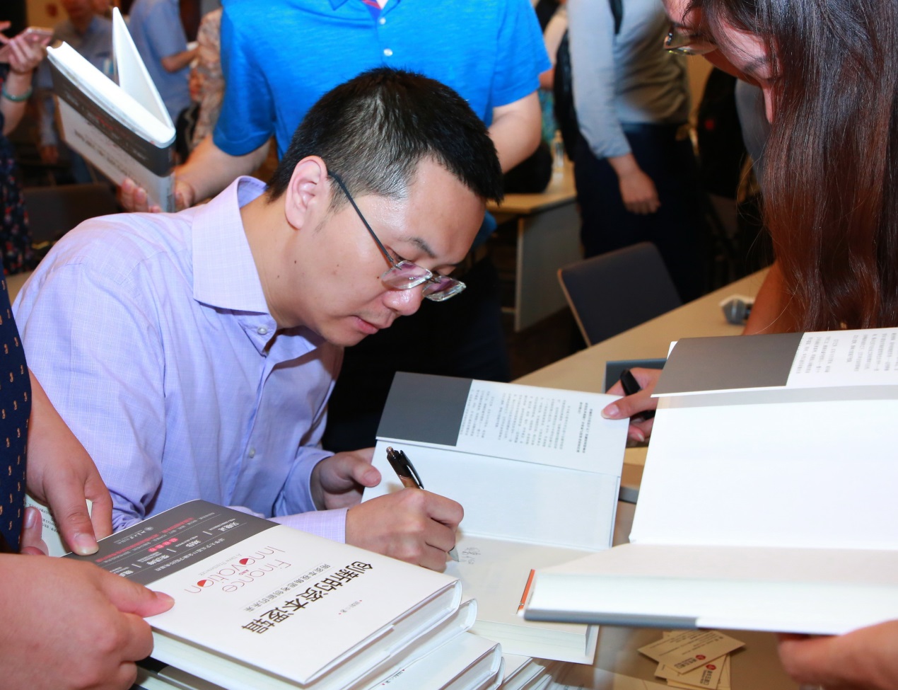 随后,田轩对新书进行了介绍,全书共十四章,每一章都是一个专题,以作者的一两篇论文为核心展开,初始会以美国的资本市场为依托,研究特定的要素如何激励企业创新,随后会落脚到中国,无论是市场角度还是政策角度,本书都着力引入大量的中国数据和案例,探索在中国的场景下如何学习美国的经验,吸取美国的教训,避免其走过的弯路,更好的利用金融手段激励企业创新并不断优化创新所需的融资安排。此外,田轩还分享了书中涉及到的部分论文写作与发表的历程,激励学者们不畏困难、坚持到底。最后,田轩亲自为到场的读者签名赠书。