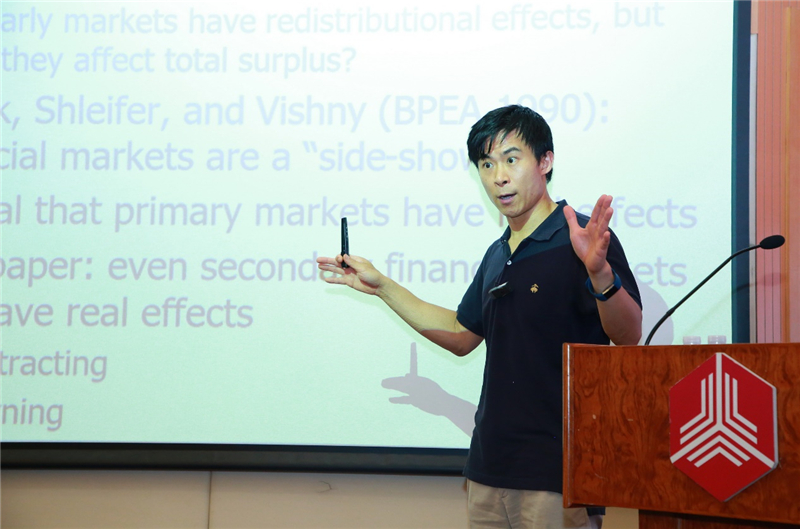 of Financial Markets”(金融市场的真实影响)的演讲,探讨了金融市场对于实体经济的影响,并从契约机制(Contracting channel)和学习机制(Learning channel)两个渠道具体分析二级金融市场对于实体经济的影响。基于委托代理理论,埃里克斯?爱德门斯实证检验了管理层的短期利益主义是否存在。他发现CEO在他们的股权解禁时低效地裁减优良投资计划来扩大短期收益并提升短期股价。在讲座的后半部分,埃里克斯?爱德门斯分享了一些学术研究的软技能,并在学术写作的简洁性和准确性上给出了很多切实可行的建议。