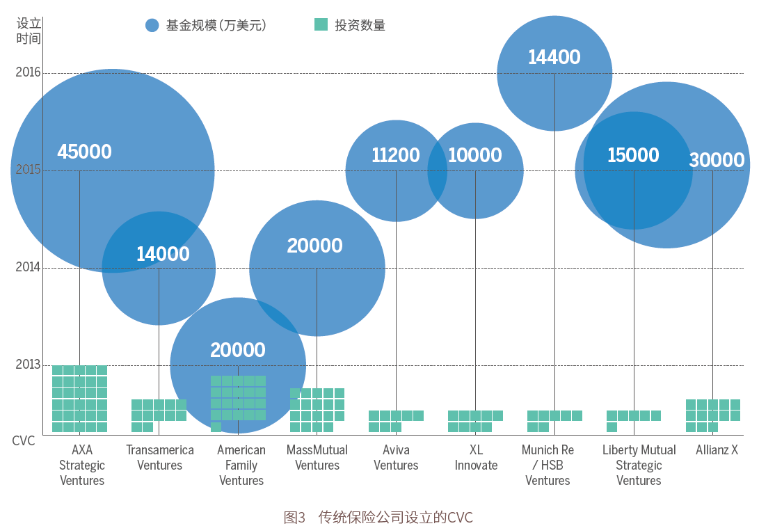 传统大型保险公司的关注领域广泛,关注重点包括以提高客户体验为目标的客户信息识别、共享经济、可视化技术;物联网领域的智能家居、车载信息服务、可穿戴设备;人工智能领域的预测性分析、机器学习、智能机器人;数据领域的网络安全、数字技术平台、应用程序编程接口(API接口)和数据、区块链服务等等。