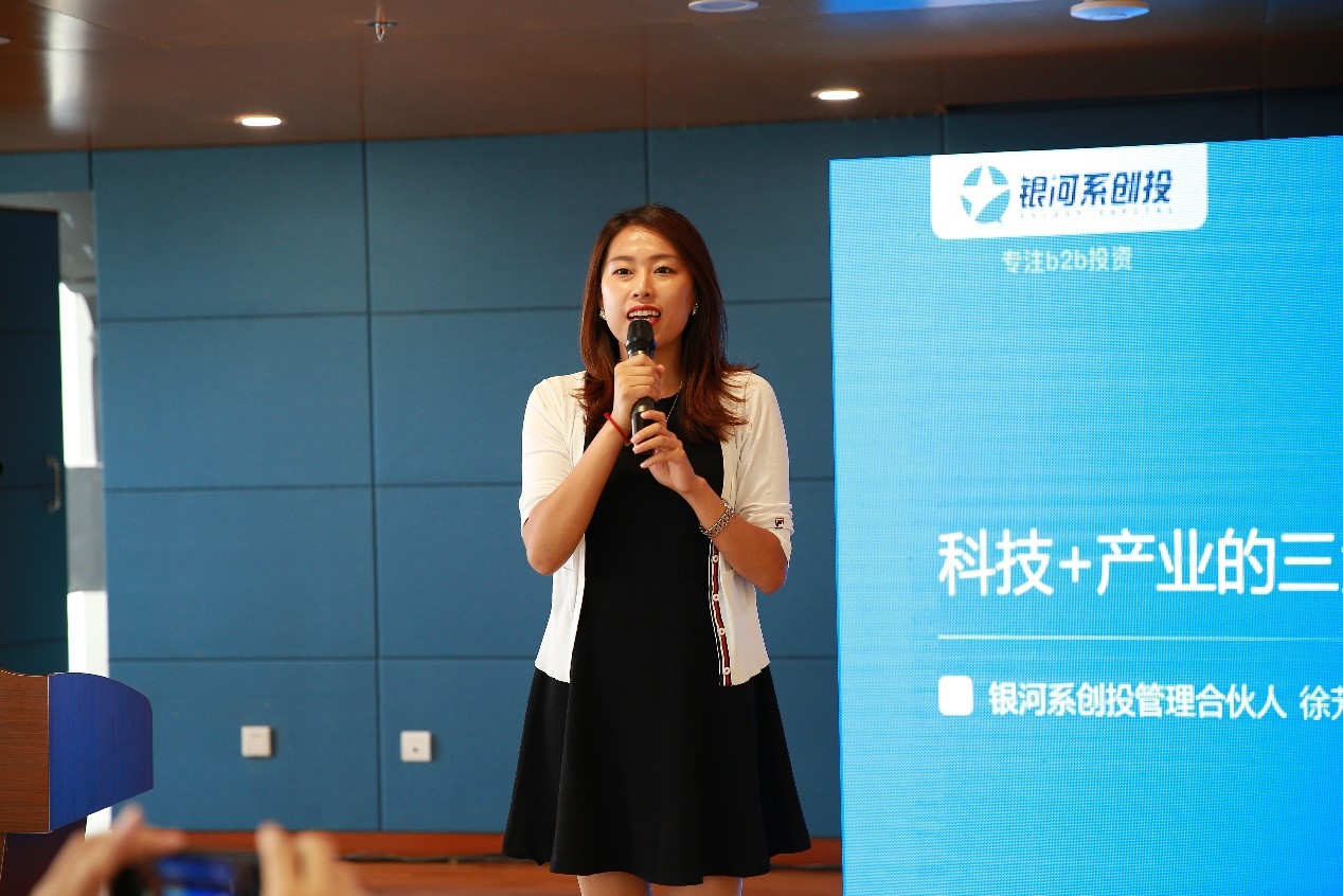 全球创业领袖项目2018春季班学员徐芳发表了演讲。她表示,B2B领域拥抱区块链、人工智能和大数据等新科技后产生了质的变化。其中,区块链能够重建信任,人工智能能够降低人力,大数据能够促进精准定位、营销和生产端的客户响应。