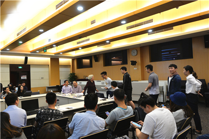 2017级硕士生代表谢天和张甜薇首先向吴晓灵汇报了入学近一个半学期以来的学习和生活情况。谢天展示了同学们来到小院之后参加的丰富多样的活动、以及课堂内外的满满收获,张甜薇则作为首批“p站视频