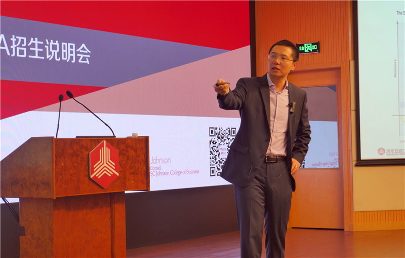 康奈尔大学约翰逊管理学院黄明教授进行了项目介绍。黄明诙谐幽默的演讲方式让同学们对清华-康奈尔双学位金融MBA项目有了更全面的了解。黄明强调,本项目在中国乃至世界上非常独特,既保持了p站视频