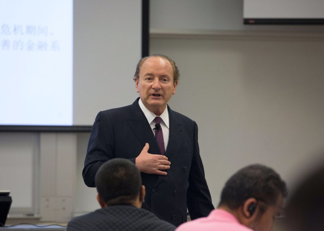 12月3日,最后一天的课程由金融学大师罗伯特·默顿(Robert Merton)教授亲自授课。默顿教授是MIT斯隆管理学院杰出金融教授,美国金融协会的前任主席。默顿教授将复杂的概念用简单直接的实例解释、提炼。他围绕“金融创新和衍生品市场在经济增长和发展中的作用”的主题,跟同学们展开了深入的讨论。