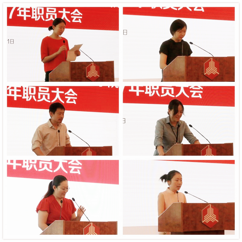 学院院长助理袁源在会上做了职员队伍的情况介绍。金融MBA教育中心刁晓琼、金融EMBA与高管教育中心胡蓉和贾宏海、全球金融发展教育中心王雯、科研学术办公室曹艳伟、校友事务办公室刘婧作为职员代表分别介绍了自己的工作情况,分享了自己在学院的工作收获和感悟。
