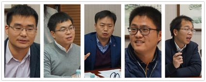 图为基层同学发言(从左到右依次为:李润权、杨元辉、李君、伏后明、欧阳维海)