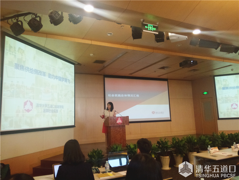 学院研团总支书记王璟璇介绍本次硕士、博士实践概况后,湖北武汉支队等七支支队依次围绕本队的实践见闻及感想收获进行答辩展示,勾勒出各支队深入了解地方百姓生活、拜访基层清华校友,深入挖掘问题、专注解决问题的动人画卷。各支队也针对当前供给侧改革背景下地方经济如何转型发展、金融机构如何实施金融精准扶贫等问题,提出自己的思考和见解。