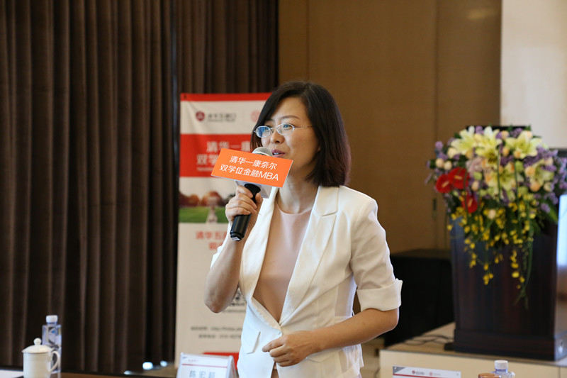 MBA教育中心副主任许玲就清华-康奈尔双学位金融MBA项目做了详尽介绍。她表示,项目具备丰富的校友资源、双语教学、非脱产、鼓励创业创新精神、顶级名师授课等特点。学生在加强理论学习的同时,既可以双向选择论文导师,又能够参与到国际范儿十足的实践环节。在这个广阔的平台上,更有精彩纷呈的班级活动、校友互动。“发现更好的你,成就更好的你,我们在五道口等你”,许玲说。