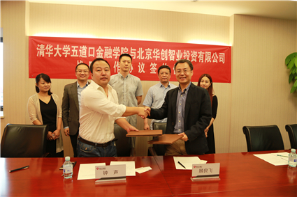 与北京华创智业投资有限公司战略合作协议签约仪式在学院举行。学院党委书记顾良飞与北京华创智业投资有限公司董事长钟声代表双方签署《战略合作协议》。学院常务副院长廖理和华创智业副总经理宋鑫、发展协调部总监李坤等见证了双方签约仪式,签约仪式由学院战略合作与发展办主任高皓主持。