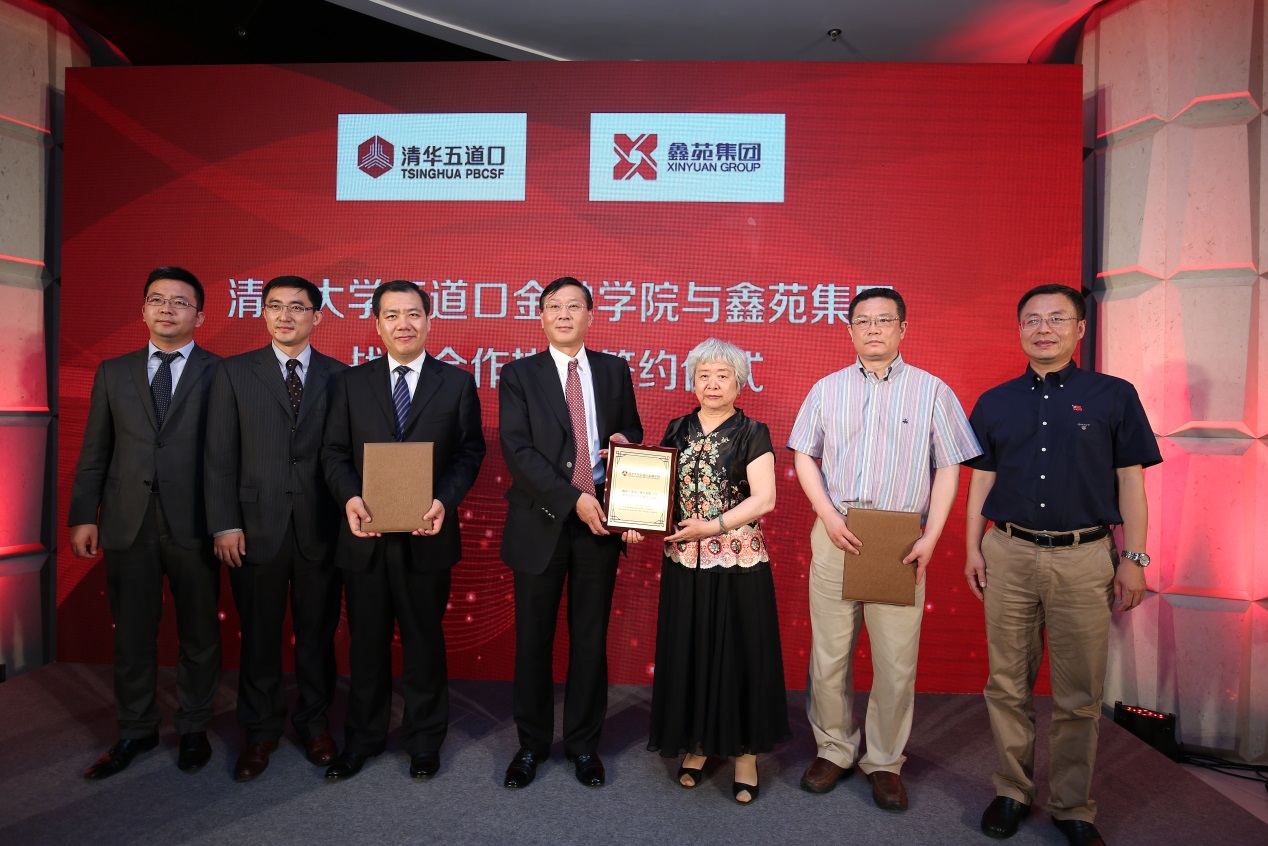 杰出教育贡献奖”。张勇在发言中回顾了公司以往取得的成绩,并详细介绍了未来的战略规划。常务副院长廖理、党委书记顾良飞,鑫苑控股总裁肖广瑞、副总裁李志杰、董事会办公室主任曹广超等见证了双方签约仪式。