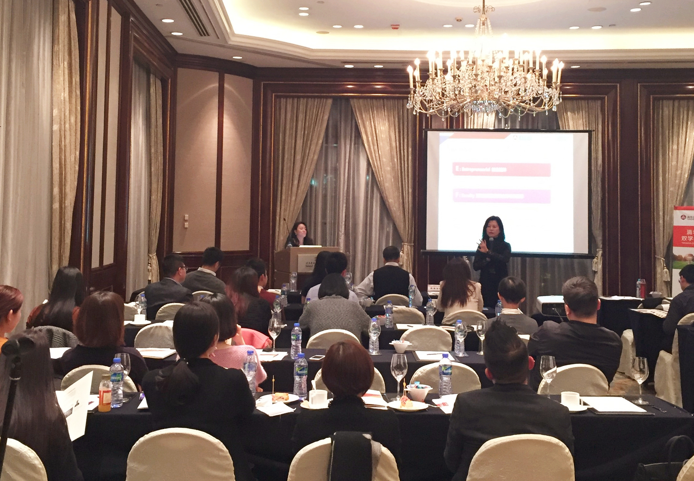 图为:陈雅如教授介绍清华-康奈尔双学位MBA项目