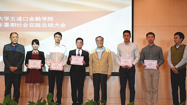 2015年暑期社会实践总结大会在三号楼多功能报告厅举行。国家开发银行顾问、金融学院实践导师代表狄卫平、校研团书记刘博涵应邀出席了总结大会,学院党委书记顾良飞,副院长康以同,党委副书记、副院长赵岑,院长助理袁源等学院领导出席了本次大会。