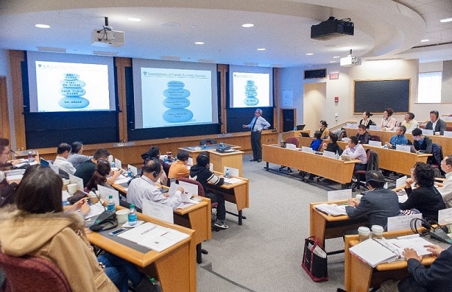 2014年11月,“清华-哈佛全球家族企业课程“在美国波士顿哈佛商学院完成了为期一周的教学。本次课程吸引了来自大中华地区的40多位大型家族企业掌门人及家族成员参与,包括近20家沪、深、港、台上市公司,学员企业年收入规模为10亿元~1300亿元人民币。同学们齐聚哈佛课堂,聆听全球家族企业学科奠基人约翰·戴维斯(John A. Davis)等知名教授授课,并与纽约时报、布隆伯格、帝国大厦等美国著名家族企业继承人共同探讨治理与传承之道。