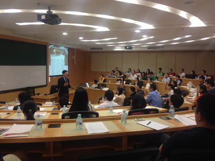 蔡侃首先介绍了项目的基本情况和目前进展,并依次对报考流程、课程设置和论文及实践环节等同学们关心的问题一一进行了说明。他以项目特色和同业比较作结,表示这一中西合璧、强强联合的项目必将为中国金融界培养出优秀领军人才,也欢迎大家踊跃报考。