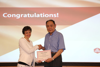 康以同在致辞中对各位学员在结业考试中的优异表现予以肯定,表达对学员的殷切期望,并为学员逐一颁发毕业证书。来自南非开普敦商学院的内森·马斯(Nathan Mass)作为学员代表发言,他分享了两周来参加项目的感受与收获,并表达了对学院及老师同学们的感谢。不少学员主动上台表达自己的激动之情,来自澳大利亚麦考瑞大学管理研究生院的同学们为金融学院的学生赠送了远道而来的纪念品,把晚会推向高潮。