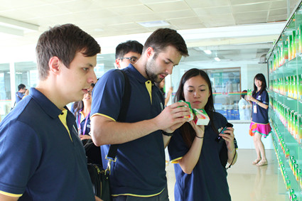 图为参观汇源果汁总部
