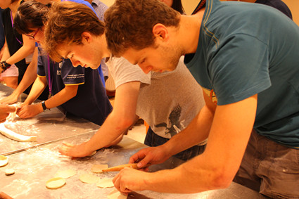 图为学员包饺子