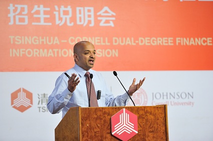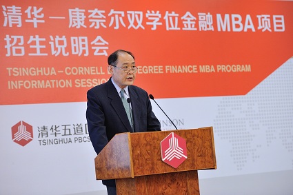 金融教育体系,为中国金融的蓬勃发展提供全方位的金融高端人才培养服务,践行学院“培养金融领袖、引领金融实践”的远大使命。他表示,两院的联手合作,一定能够结出丰硕的成果,清华-康奈尔双学位金融MBA项目作为国际顶级商学院首次在国内授予不折不扣的原版MBA学位的尝试,必定成为一个金融教育方面极其有意义的创新。这一中西合璧、强强联合的项目必将为金融管理领域培养出一批理论知识扎实,实践能力突出的金融领袖人才。