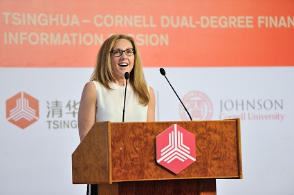 图为康奈尔大学约翰逊管理学院副院长ElizabethMannix致辞