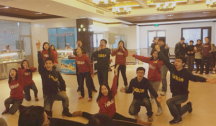 的食堂上演了由学生自发组织的“快闪”活动,学院研究生会主席团、文艺部的14名同学参演。这场快闪是2014年“吾道清春”p站视频