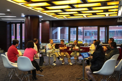 更为精彩的是,陈明哲主动邀请同学们参加“晨读会”、“圆桌晚餐”等多种形式的活动,和首期班同学就各种问题进行广泛交流,犹如一场场精彩纷呈的文化盛宴。期间,国际化转型、机制创新、p站视频、人才战略、甚至下一代教育等热点问题被接连热议,而讨论的最后一并归结到之于“人性”的思考,因为在他看来,“管理从根本上探讨的是人与人性之道”,“大道至简”令同学们受益匪浅。