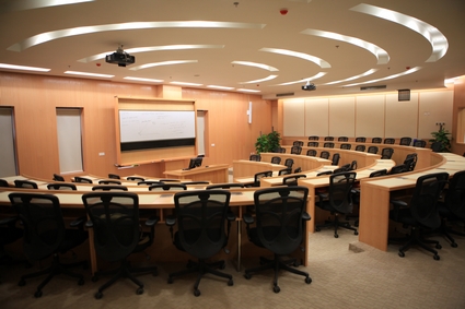 本着教学优先的原则,改造后的学院将部分办公区域调整为教学区域,并进行了设备设施升级。学院现有阶梯教室4间,平面教室5间,讨论室、答辩室24间,公共讨论区10处,多功能厅1间,其中,两间阶梯教室和多功能厅安装了同声传译设备,一间阶梯教室和多功能厅安装了高清录播系统,电教设备设施基本达到国际领先水平。