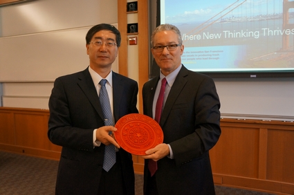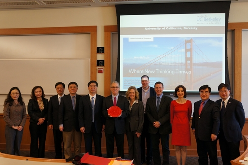 副校长姜胜耀、人事处处长王希勤,学院理事、中国保监会副主席周延礼,学院常务副院长廖理、党委书记兼副院长聂风华等一行访问伯克利加州大学哈斯商学院。哈斯商学院院长瑞奇•莱昂斯(Rich Lyons),学院培训项目、EMBA项目、MBA项目的负责人会见了代表团一行。