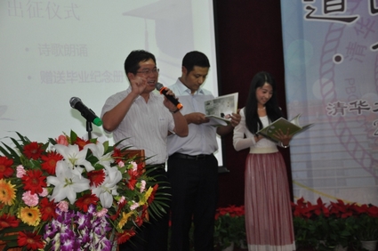 在随后的毕业生出征仪式上,聂风华代表学院向毕业生赠送了签名的毕业纪念手册,并代表学院对献上祝福和勉励。