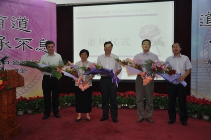 当晚六点, “道口有道,传承不息”金融学院2012届毕业酒会在C座多功能厅举行,吴晓灵、沈炳熙、廖理、聂风华、肇越、康以同、赵岑等学院领导和导师以及部分2012届毕业生、在校生参加了此次酒会。