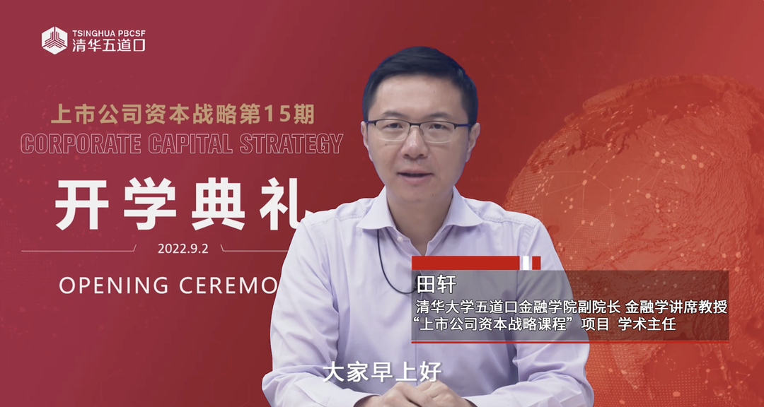金融学讲席教授、副院长、上市公司资本战略项目学术主任田轩发表项目开学致辞,他表示:“2022年的变幻莫测相信对同学们的企业产生了不同程度的影响,这一年中小企业被卷入了压力升级的新困境中,国际环境复杂多变,国内疫情多点散发,成本与需求压力‘双杀’。我们一直认为民营企业对于国民经济的增长和发展至关重要。我一直在研究企业创新方面的课题,并持续关注如何结合资本市场的力量,助力企业发展壮大,支持企业创新,并为企业家们呼吁,建设稳定有效的政策制度和良好的舆论软环境。同时也希望企业家同学们借助这个特殊时段,修炼内功、开拓眼界,为以后的发力养精蓄锐。希望我们的项目能够成为你们未来人生的新起点,帮助你们提升认知,并找到志同道合的朋友”。