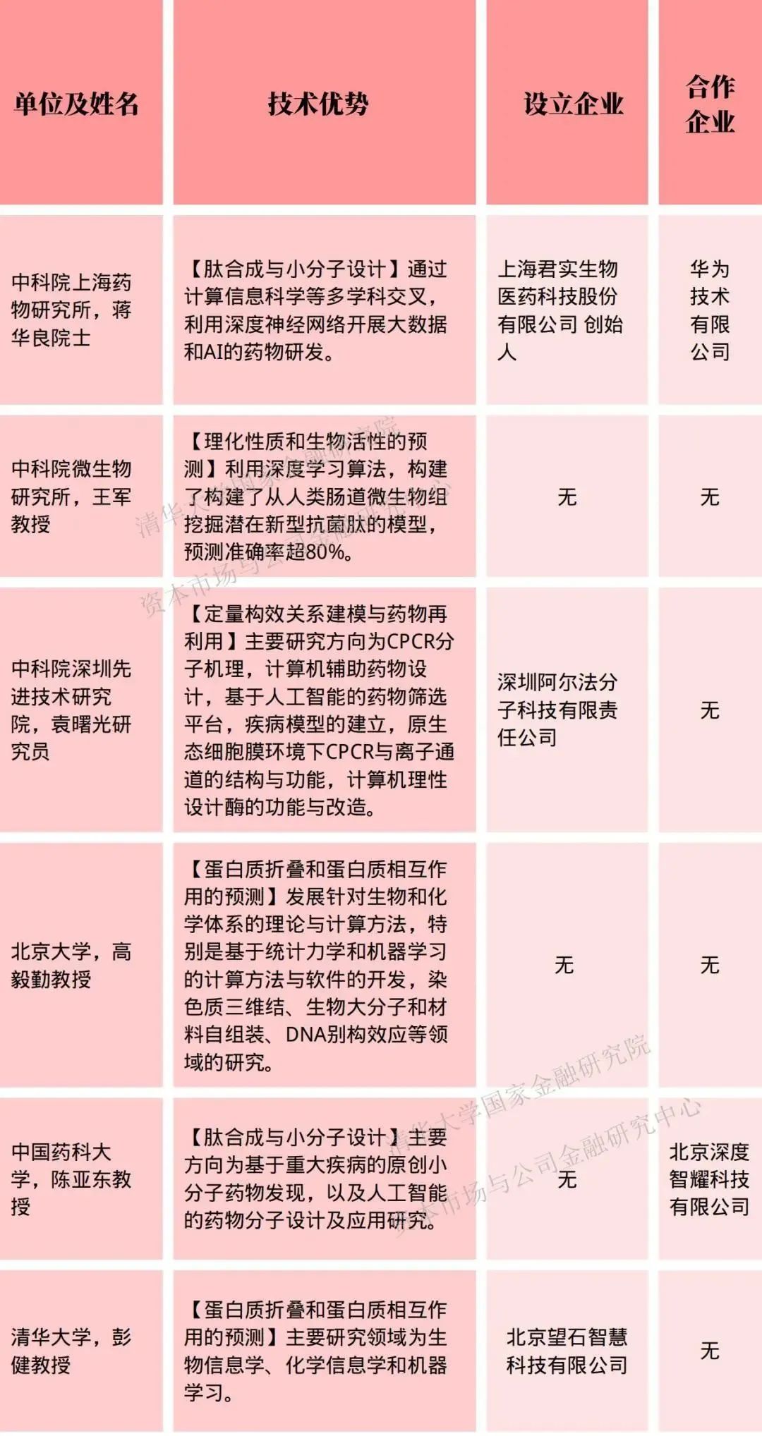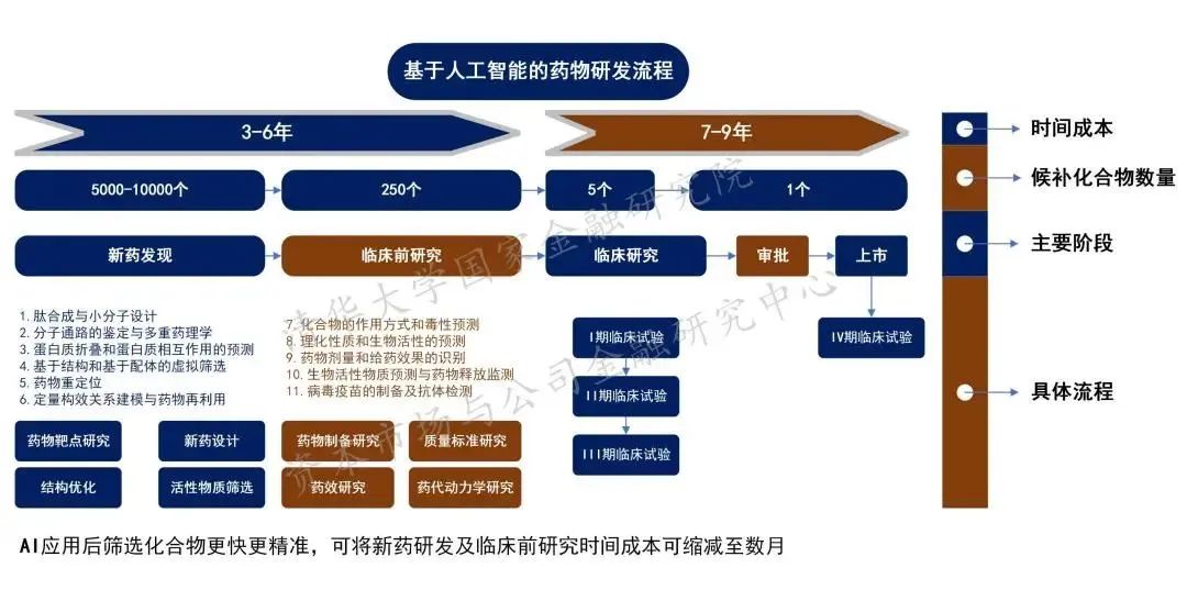 国家金融研究院资本市场与公司金融研究中心基于科技成果转化研究的一项子课题,聚焦于科技成果这一核心要素,从技术链视角切入展开的研究项目。通过行业图谱的研究,既为科技成果转化提供了专业性知识体系支撑,也有助于指导城镇产业化发展布局、推动产业链融通创新、引导创业投资基金对“硬科技”的积极性及鼓励金融支持创新体系的建设。本报告为行业图谱的第一个系列——生物医药领域:人工智能在药物发现与研发中的应用。