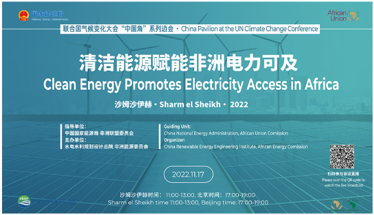 国家金融研究院绿色金融研究中心(CGFR)副主任孙天印应邀远程出席《联合国气候变化框架公约》第二十七次缔约方大会(COP27)“清洁能源赋能非洲电力可及”中国角边会活动。