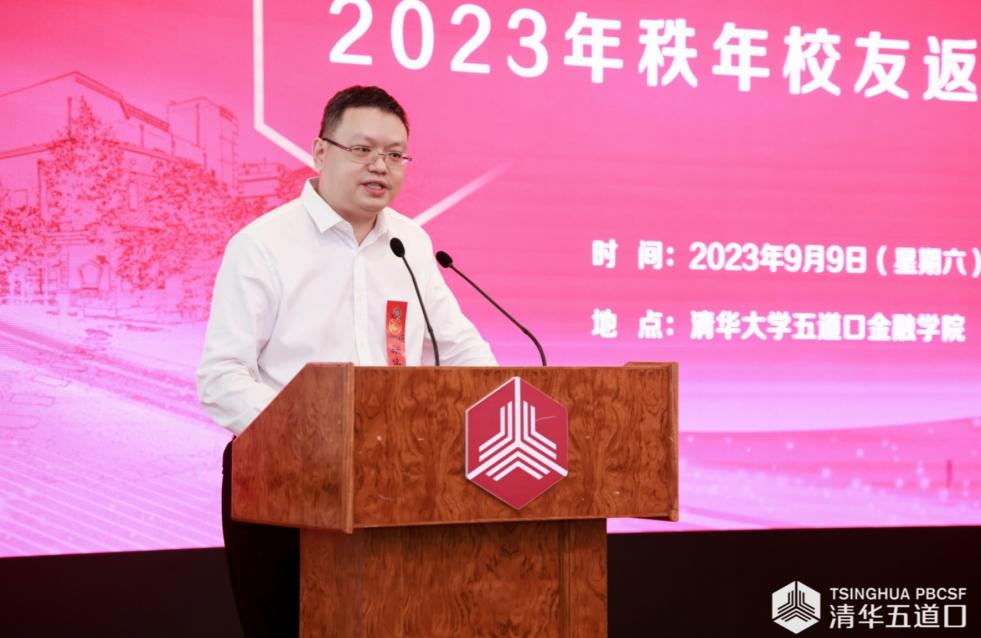 杨赫首先感谢五道口校友办举办秩年校友返校活动,让大家有机会齐聚一堂,并预祝学院老师教师节快乐。他详细回顾与学院老师、校友、同学学习交往的点点滴滴,表示面对“两个大局”,将与校友们一道,践行“自强不息、厚德载物”的清华校训,发扬“不怕苦、敢为先、讲团结、重贡献”的五道口精神,坚持国际视野、立足中国,把握发展大势,发挥专业所长,共同为中国特色金融发展做出更大的贡献。