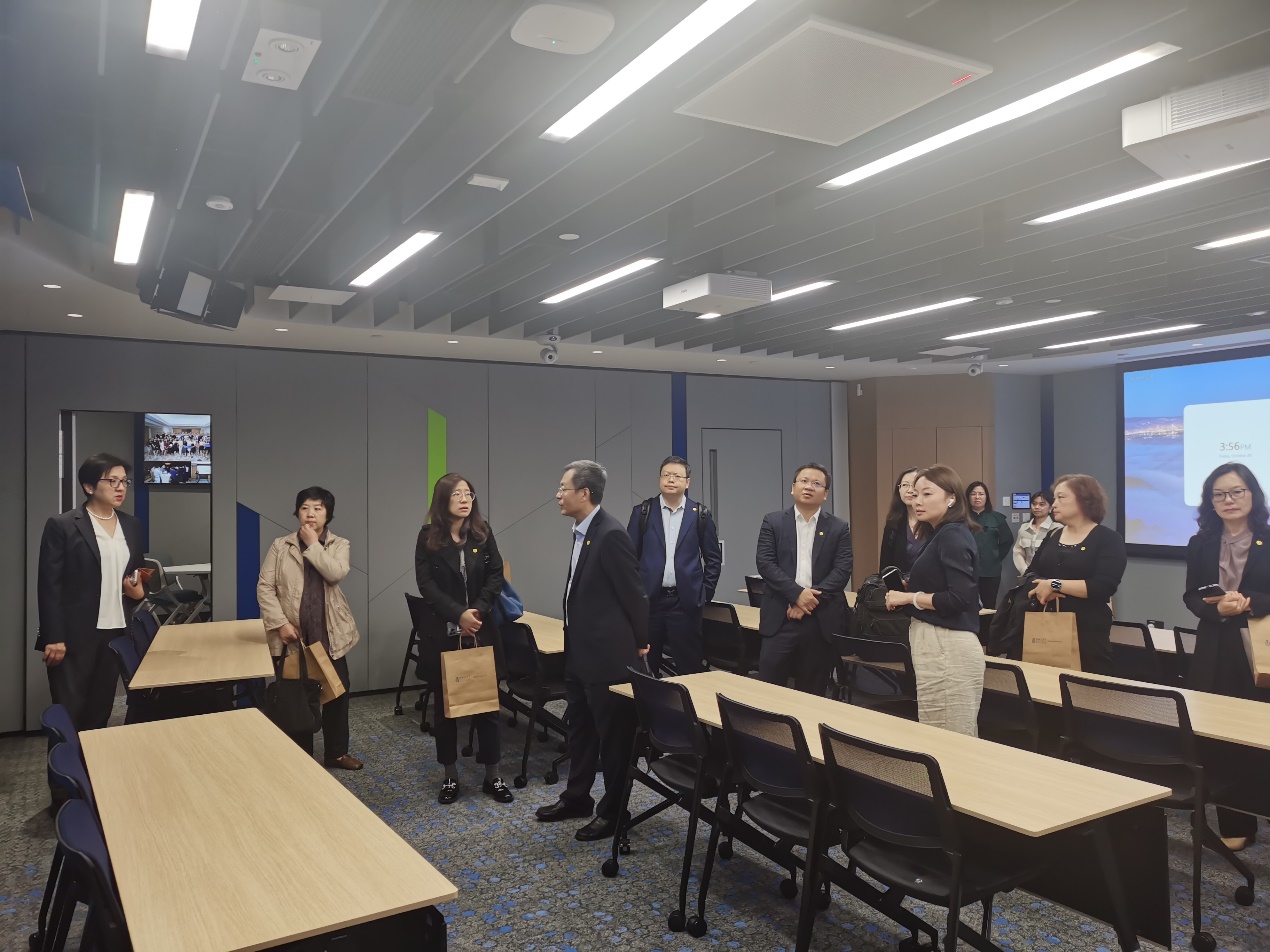 基础设施建设是此次调研的重要议题之一,顾良飞一行参观了三所院校的校园环境、智能化教学设施和多功能教室等,为学院通州基地的建设提供思路和借鉴。