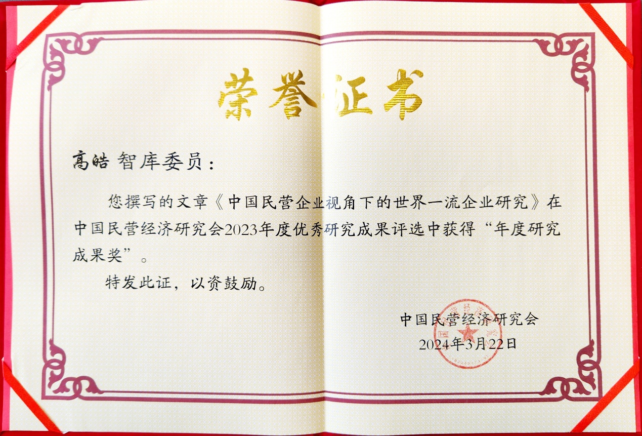 两篇获奖论文为高皓主持的全国工商联智库重点课题(QLZK23A003)研究成果,在《全国工商联智库专报》等内参发表,并获得了重要的智库成果应用。
