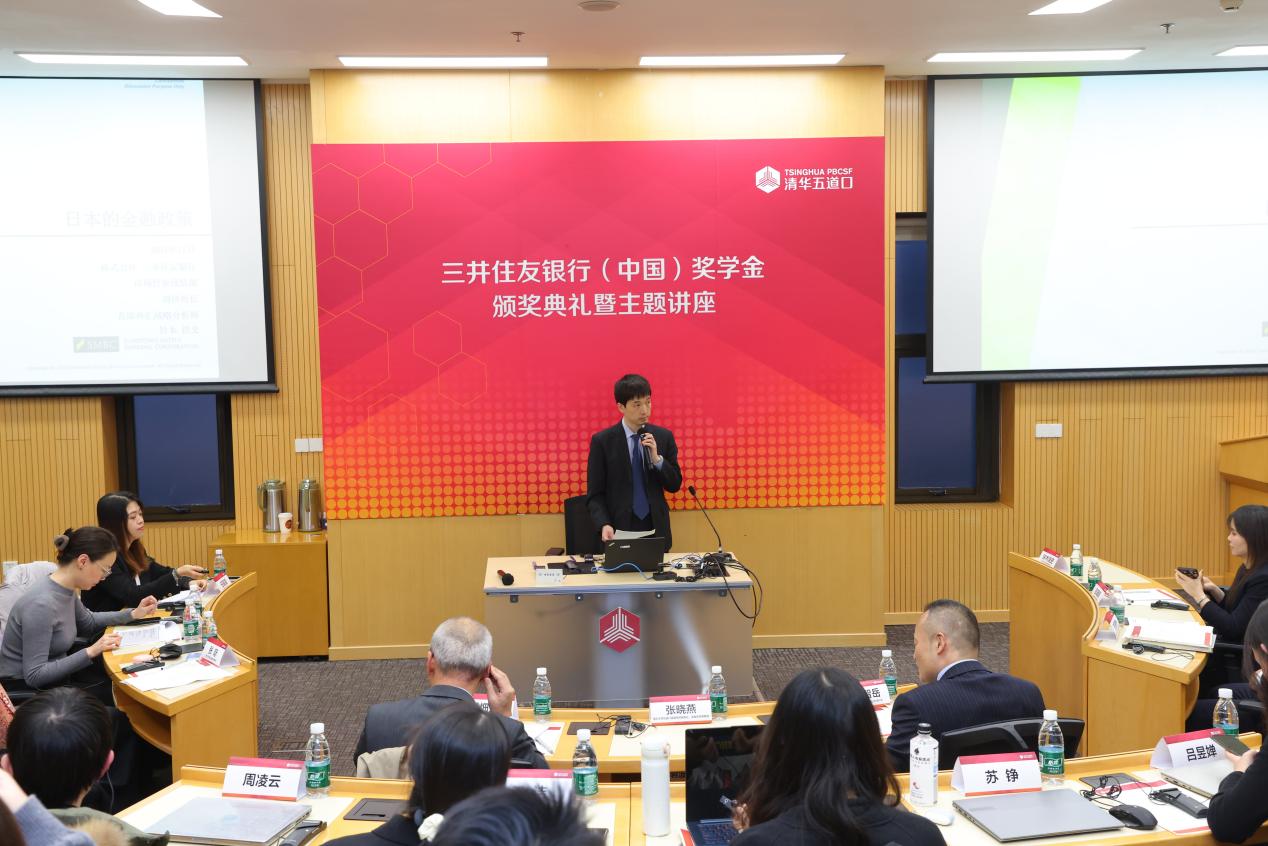 颁奖仪式后,三井住友银行市场营业统括部调查处处长、首席外汇战略分析师铃木浩史以《日本的金融政策》为题作专题讲座。讲座从经济增长、通货膨胀、货币政策的关系进行概述,回顾迄今为止日本非常规货币政策及其变迁史,从宏观经济学的观点分析解读日本经济的现状,讨论日本金融政策今后的课题。