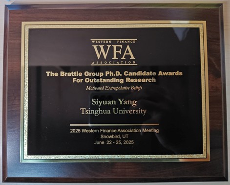 当地时间6月22日至25日,2025年美国西部金融年会(Western Finance Association Annual Meeting, WFA)在犹他州雪鸟城(Snowbird)举行。学院2020级博士生杨思远独作论文《Motivated Extrapolative Beliefs》入选并获The Brattle Group Ph.D. Candidate Awards For Outstanding Research。