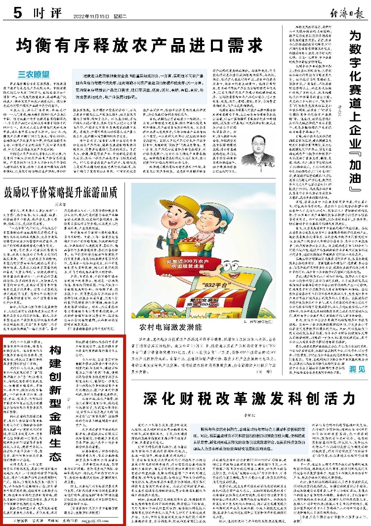 综上,只要我们以金融高质量发展作支撑,不断优化资本市场的发展质量与运行效率,通过金融“活水”持续浇灌实体经济,就能构建具有中国特色的创新型金融新生态。