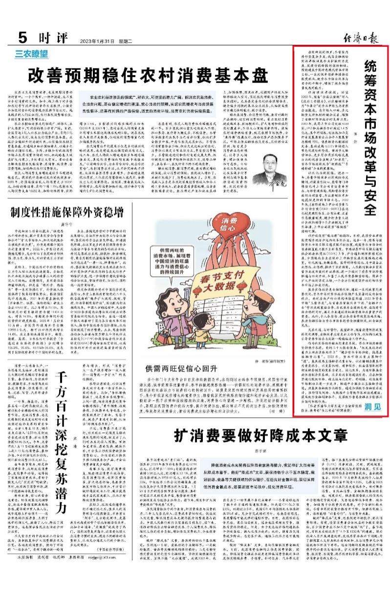 副院长、金融学讲席教授田轩在题为《统筹资本市场改革与安全》署名文章里,通过回顾总结我国资本市场改革来路,对于新一年资本市场以“进”为核心的发展路径进行了探究。该文章已刊发于1月31日出版的《经济日报》第五版。