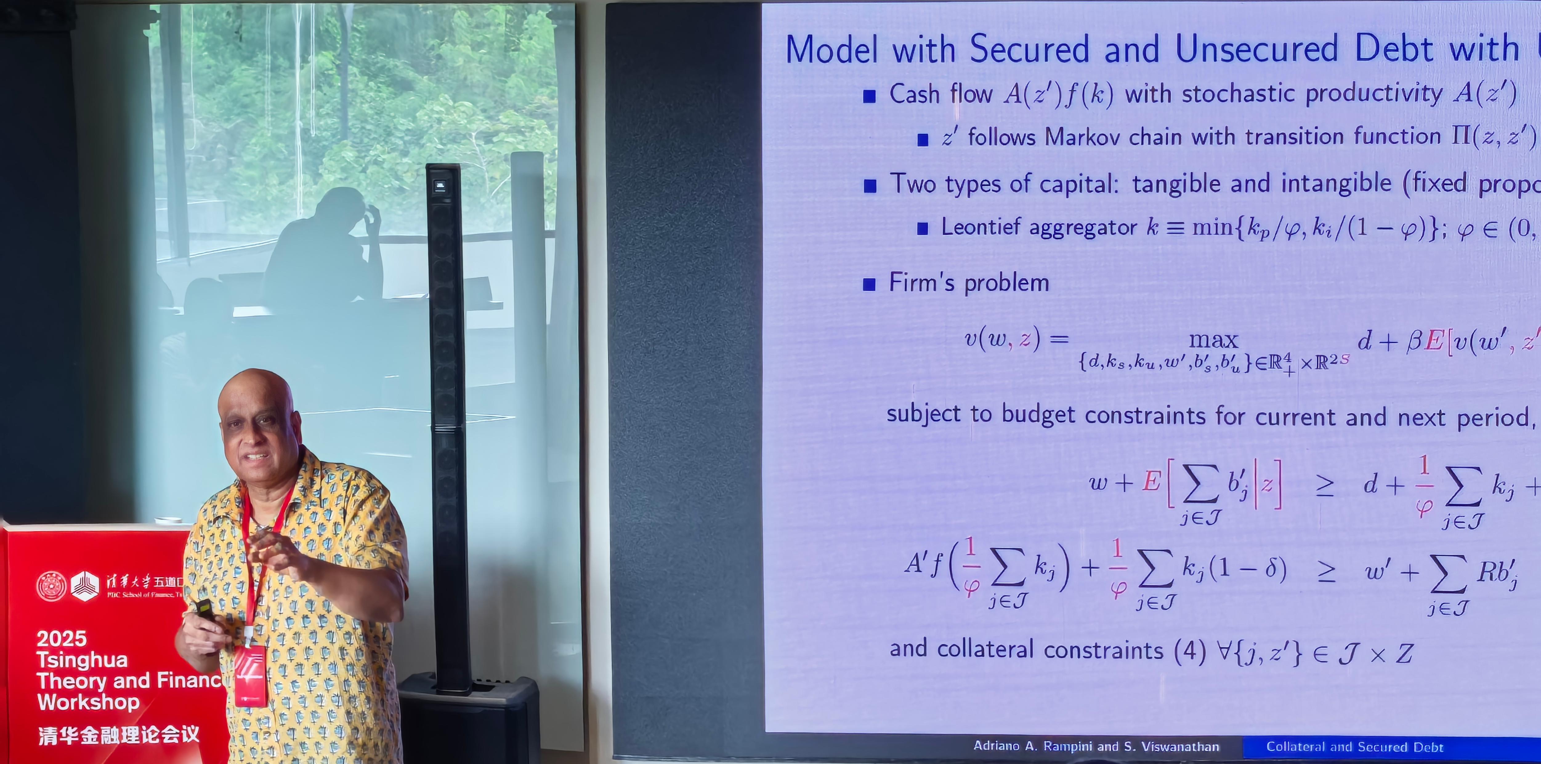 杜克大学富卡商学院F. M. Kirby投资银行讲席教授S. "Vish" Viswanathan发表题为“Collateral and Secured Debt”的主旨演讲,探讨抵押品如何影响企业在有担保与无担保融资之间的选择及资本结构的动态演变。不同于将抵押品简单等同于有担保债务的传统理解,他强调从经济学角度看,抵押品是“促进执行的可抵押资产”,因此不仅支撑有担保债务,也通过未设定担保的资产对无担保债务形成“隐性约束”。在其动态模型中,有担保债务通过对特定资产设置显性抵押强化债权人执行力、提升可借额度,但同时带来设定担保的成本。基于这一模型,Viswanathan 教授提出企业的债务结构会随财务约束而内生调整——约束更强时更依赖租赁与有担保债务,净值改善后逐步转向无担保融资,呈现“租赁→有担保→无担保”的融资路径;评级下调冲击的因果森林证据也表明,下调后企业会显著增加有担保债务,且该效应在更受约束的企业中更为明显。